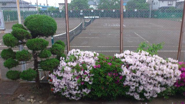 きれいに整備されたクレーコートと手入れの行き届いた庭木たち!今日は雨が降り始めてしまったので画像が少し暗いですね・・・